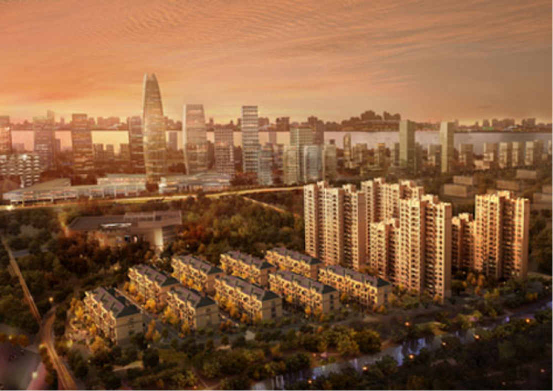 • 由4栋高层公寓与9栋叠加别墅组成,容积率1.7。公寓户数368户,叠加户数104户。